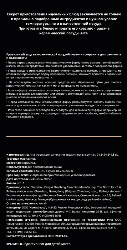 Форма для запекания Hitt Arte керамическая, 35.5 x 23 x 7.6см