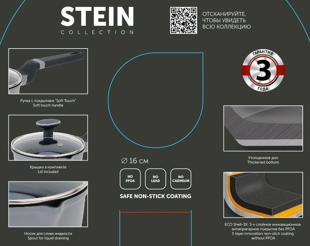 Кастрюля Polaris Stein 4.3л, 24см