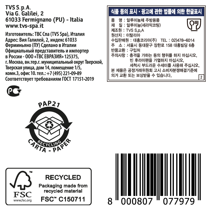 Кастрюля TVS Cooking Deluxe без крышки 4.4л, 24см