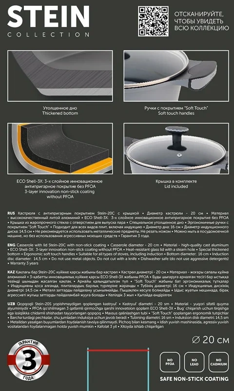 Кастрюля Polaris Stein 2.5л, 20см