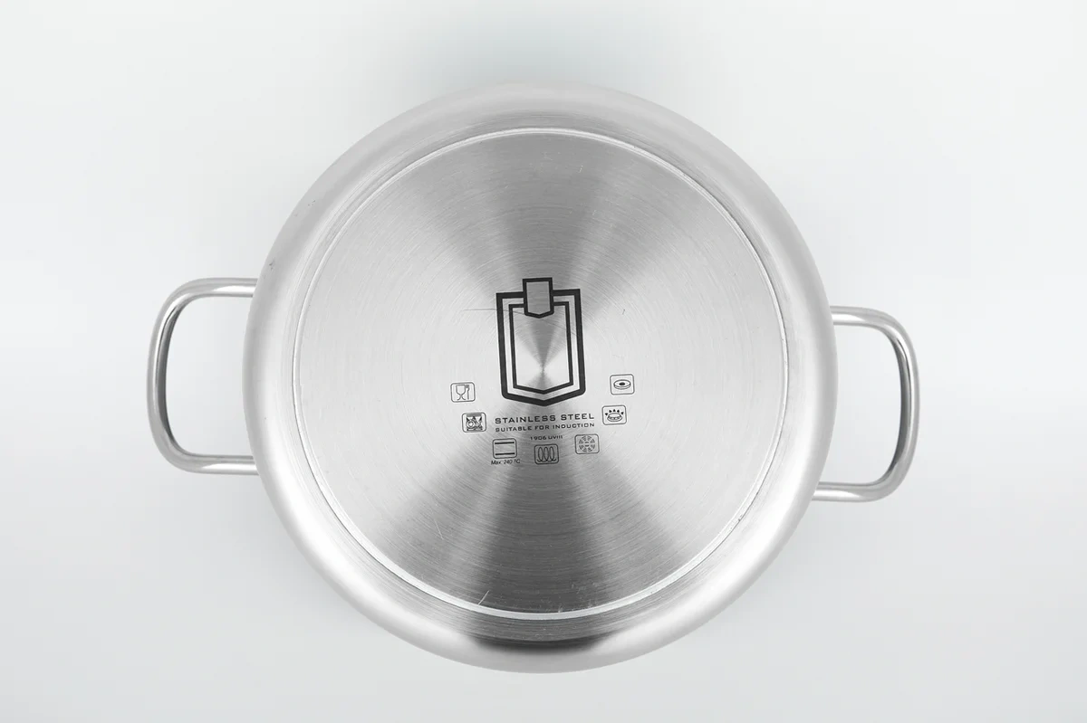 К кастрюле подходит крышка 79331 METRO PROFESSIONAL Крышка нержавеющая сталь, 36см; METRO PROFESSIONAL Кастрюля, 36 л, 36 см – универсальное изделие, которое необходимо для любой кухни. Такую посуду можно использовать как в домашних условиях, так и в профессиональной деятельности. Ее приобретают для кафе, баров, ресторанов и других предприятий общественного питания. Изготовлена кастрюля из прочного и долговечного материала, нержавеющей стали. Он считается лучшим и часто используется для производства столовой посуды. Стальные кастрюли не подвержены воздействию высоких температур и других факторов внешней среды. Даже при нагреве до высоких температур они не деформируются, не выделяют опасных или токсичных веществ. Такие изделия обладают антикоррозийными свойствами. Они не меняют вкусовых качеств при контакте с продуктами и не впитывают посторонние запахи. Кастрюля рассчитана на длительную эксплуатацию. Она удобна в применении. Сбоку имеются две ручки, за которые удобно держать изделие. Внутри имеется антипригарное покрытие, которое препятствует пригоранию пищи во время приготовления блюд. Ухаживать за стальной кастрюлей легко. Любые загрязнения легко отмываются под проточной водой (холодной или горячей). При необходимости можно использовать различные моющие средства. При правильном уходе посуда долго сохраняет привлекательный внешний вид.