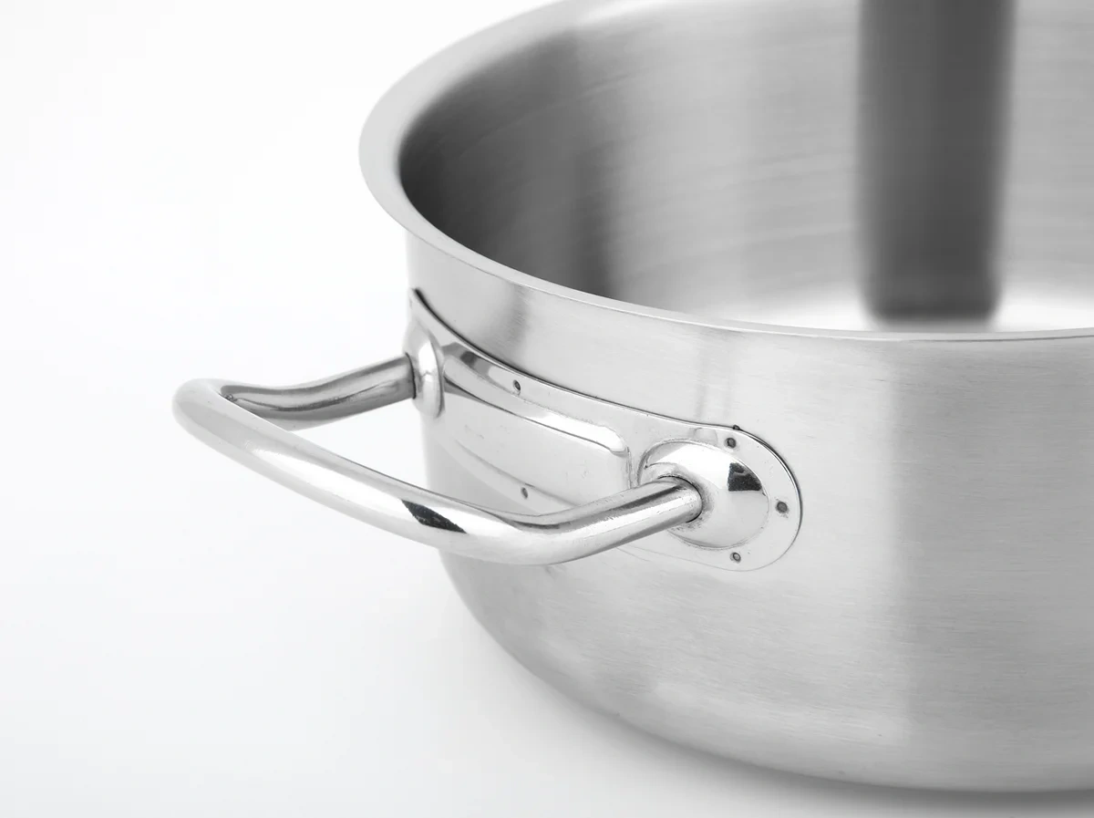 К кастрюле подходит крышка 359100 METRO PROFESSIONAL Крышка нержавеющая сталь, 24см; METRO PROFESSIONAL Кастрюля, 4 л, 24 см – универсальное изделие, которое необходимо для любой кухни. Такую посуду можно использовать как в домашних условиях, так и в профессиональной деятельности. Ее приобретают для кафе, баров, ресторанов и других предприятий общественного питания. Изготовлена кастрюля из прочного и долговечного материала, нержавеющей стали. Он считается лучшим и часто используется для производства столовой посуды. Стальные кастрюли не подвержены воздействию высоких температур и других факторов внешней среды. Даже при нагреве до высоких температур они не деформируются, не выделяют опасных или токсичных веществ. Такие изделия обладают антикоррозийными свойствами. Они не меняют вкусовых качеств при контакте с продуктами и не впитывают посторонние запахи. Кастрюля рассчитана на длительную эксплуатацию. Она удобна в применении. Сбоку имеются две ручки, за которые удобно держать изделие. Внутри имеется антипригарное покрытие, которое препятствует пригоранию пищи во время приготовления блюд. Ухаживать за стальной кастрюлей легко. Любые загрязнения легко отмываются под проточной водой (холодной или горячей). При необходимости можно использовать различные моющие средства. При правильном уходе посуда долго сохраняет привлекательный внешний вид. Ее объема достаточно для приготовления первых и вторых блюд для большой семьи.