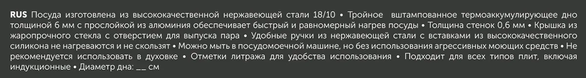 | Комплектация | кастрюля - 1 шт.; крышка - 1 шт. |