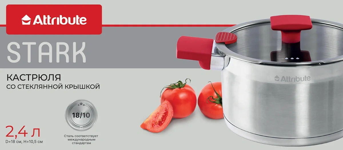 Кастрюля с крышкой Attribute Stark 2.4л, 18см