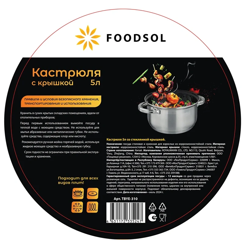 Кастрюля с крышкой Foodsol 5л
