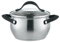 Кастрюля оснащена удобными ручками, которые не нагреваются, что обеспечивает комфортное использование. Крышка со стеклом позволяет контролировать процесс приготовления без необходимости ее поднимать.