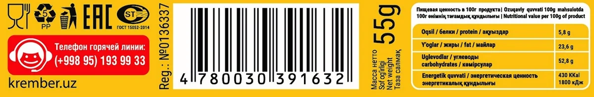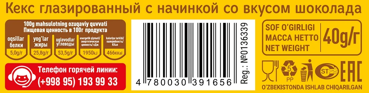 Кекс Krember Bruni глазированный c начинкой со вкусом шоколада, 40г