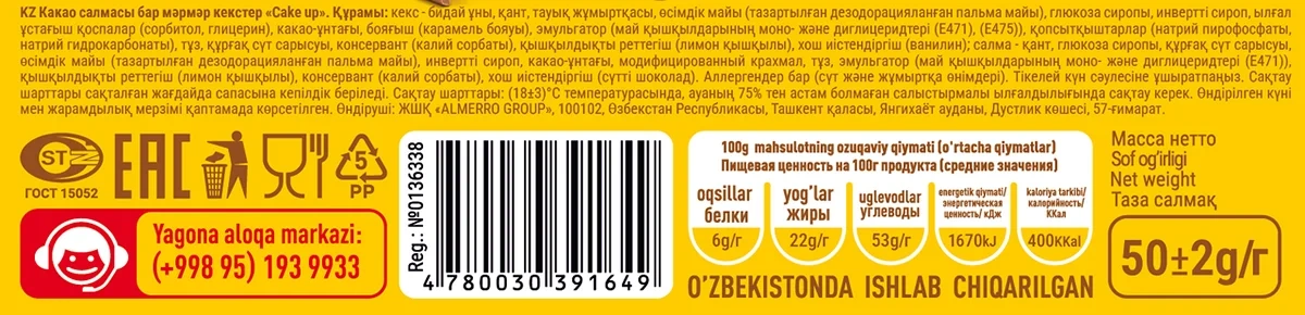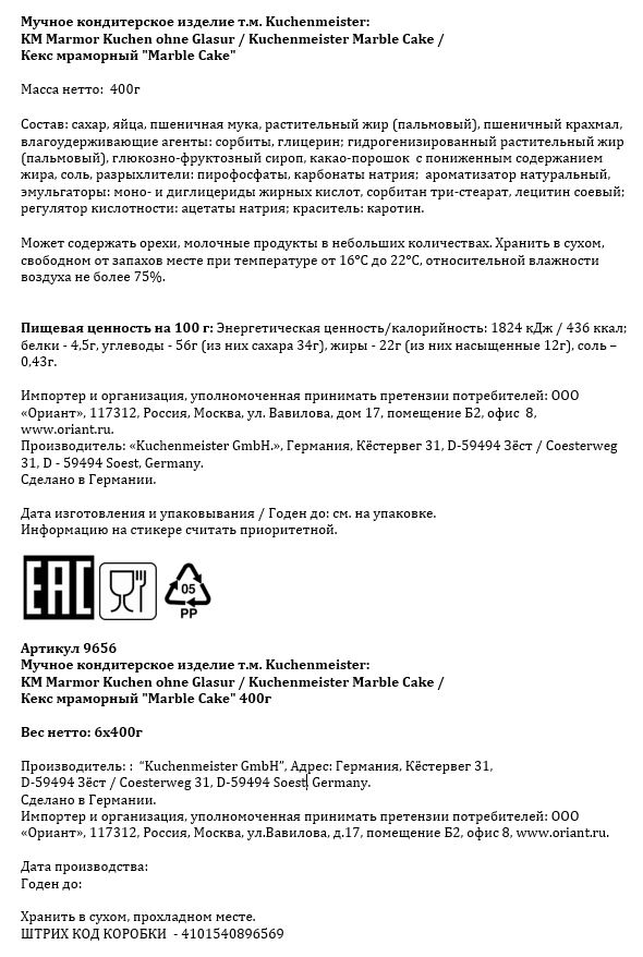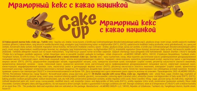 Кекс Krember Cake Up мраморный с какао начинкой, 50г