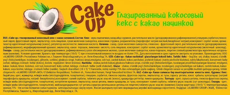 Кекс Krember Cake Up глазированный кокосовый с какао начинкой, 55г