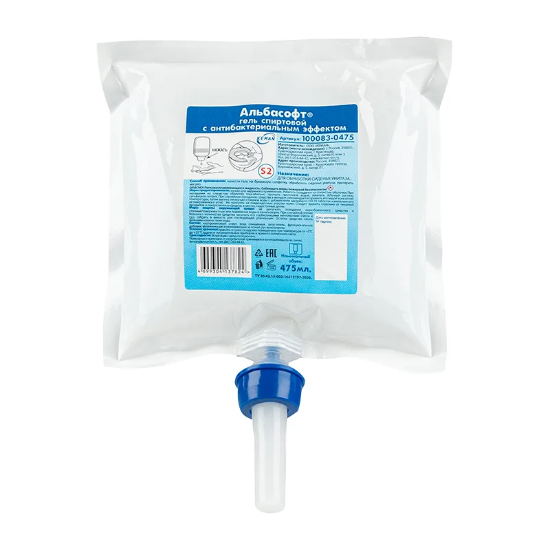 Дезинфицирующее средство для сидений унитазов в картридже Keman Альбасофт S2 475мл, спиртовой, гель, без цвета, 100083-0475