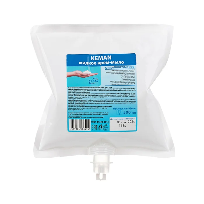 Жидкое крем-мыло в картридже Keman Lite 500мл, перламутровое белое, 100020-0500