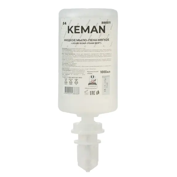 Пенное мыло в картридже Keman S4 1л, бесцветное, мягкое, 500511