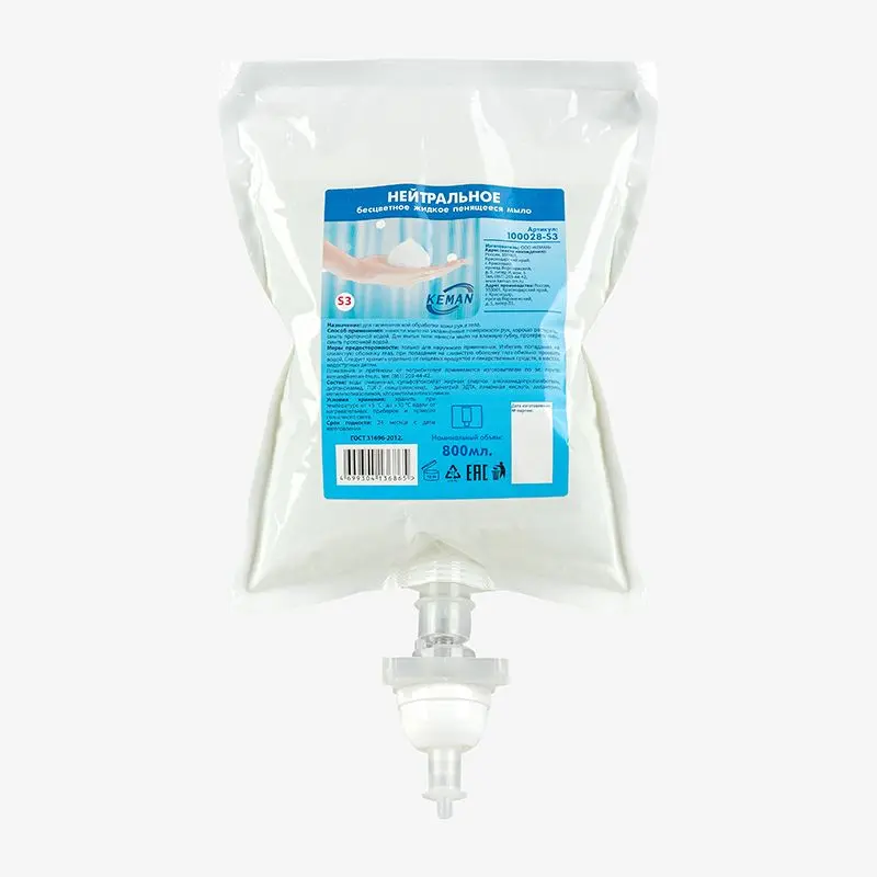 Пенное мыло в картридже Keman S3 800мл, бесцветное, без отдушки, 100028-S3