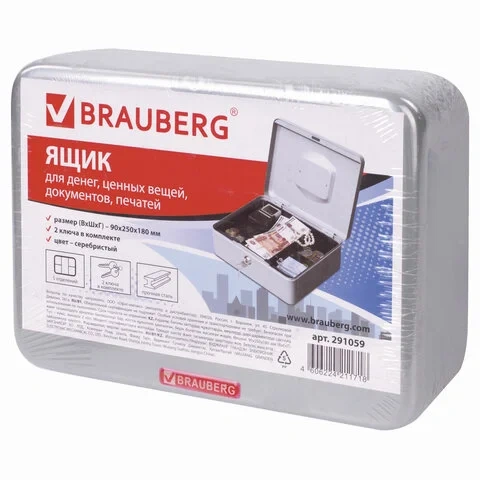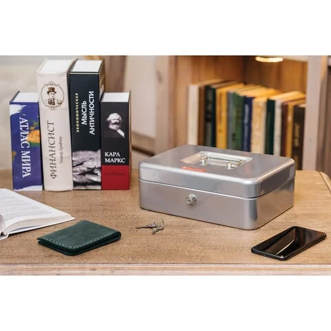 Кэшбокс Brauberg 90х180х250мм, ключевой замок, серебристый