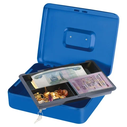 Кэшбокс Brauberg 9х18х25см, ключевой замок, синий