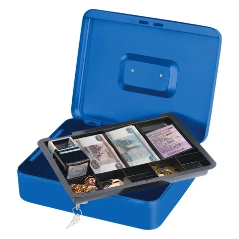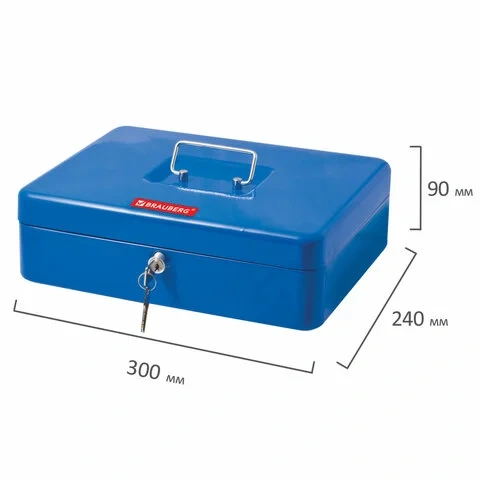 Кэшбокс Brauberg 9х24х30см, ключевой замок, синий