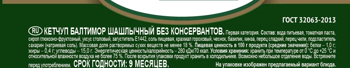 Содержит кусочки ароматного чеснока. Идеально дополнит блюда из мяса или птицы на гриле, а также будет отлично сочетаться с любым гарниром, в том числе с запеченными овощами. Густой кетчуп из отборных спелых помидоров со сладким и острым перцем, кусочками чеснока и зеленью. Отличается насыщенным томатным вкусом и особенно подходит к мясу, приготовленному на мангале и гриле, однако хорош и к пасте, различным гарнирам из овощей и круп.