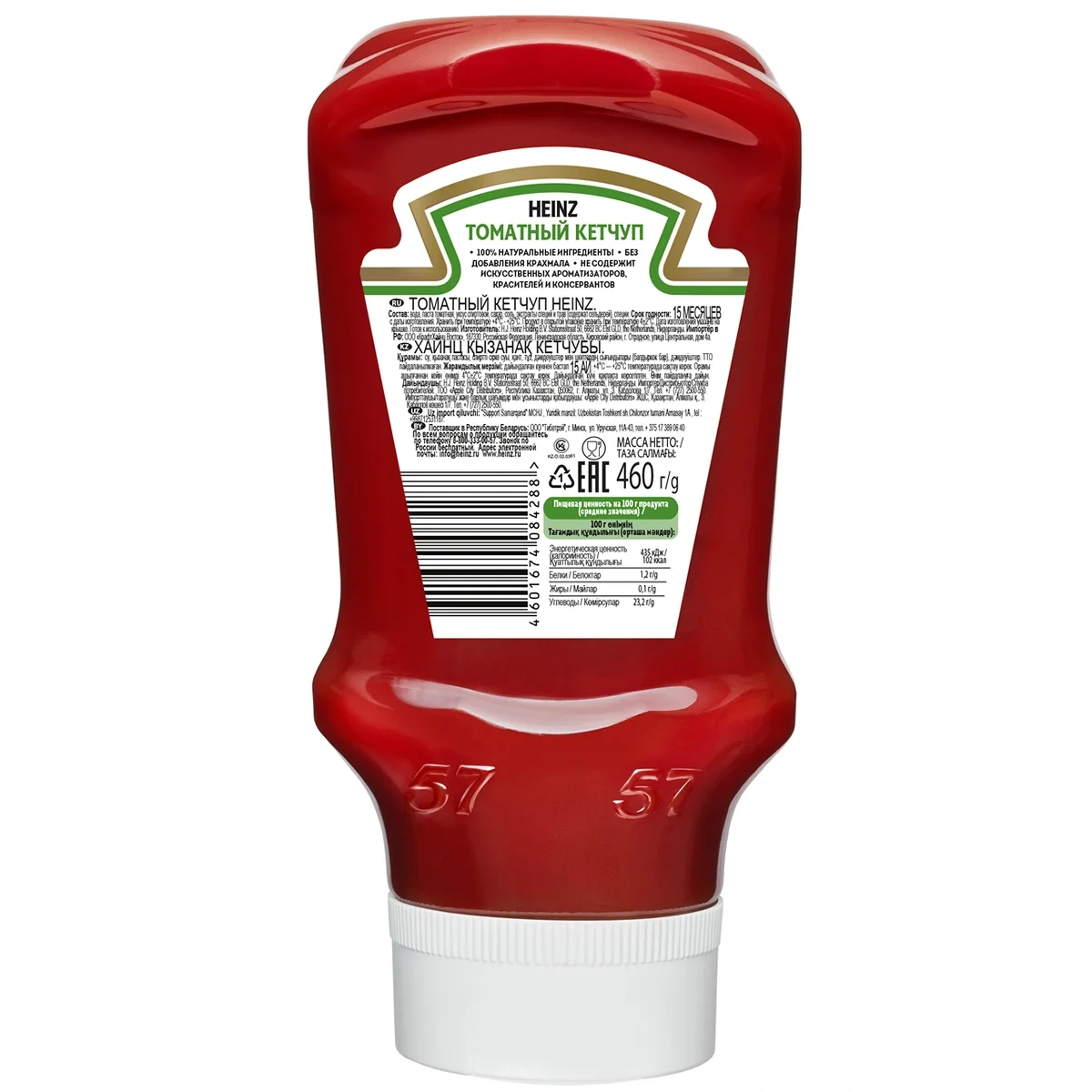 Кетчуп Heinz Томатный пластиковая бутылка, 460г создан на основе спелых томатов. Пройдя термическую обработку, помидоры становятся источником ликопина, вещества, обладающего противораковыми свойствами. Ликопин связывает свободные радикалы и предупреждает процессы окисления. В результате повышается эластичность стенок сосудов, снижается риск образования холестериновых бляшек, укрепляется иммунитет. Помимо томатов в состав входят уксус, соль, сахар и специи. Никаких генно-модифицированных добавок или красителей и консервантов. Консистенция кетчупа в меру густая, благодаря чему он легко выдавливается из упаковки, но не растекается по продуктам. Кетчуп станет достойным дополнением к мясным, рыбным блюдам. Подойдет к шашлыку, гамбургерам, иным бутербродам, оттенит вкус гарниров на основе круп или макаронных изделий.