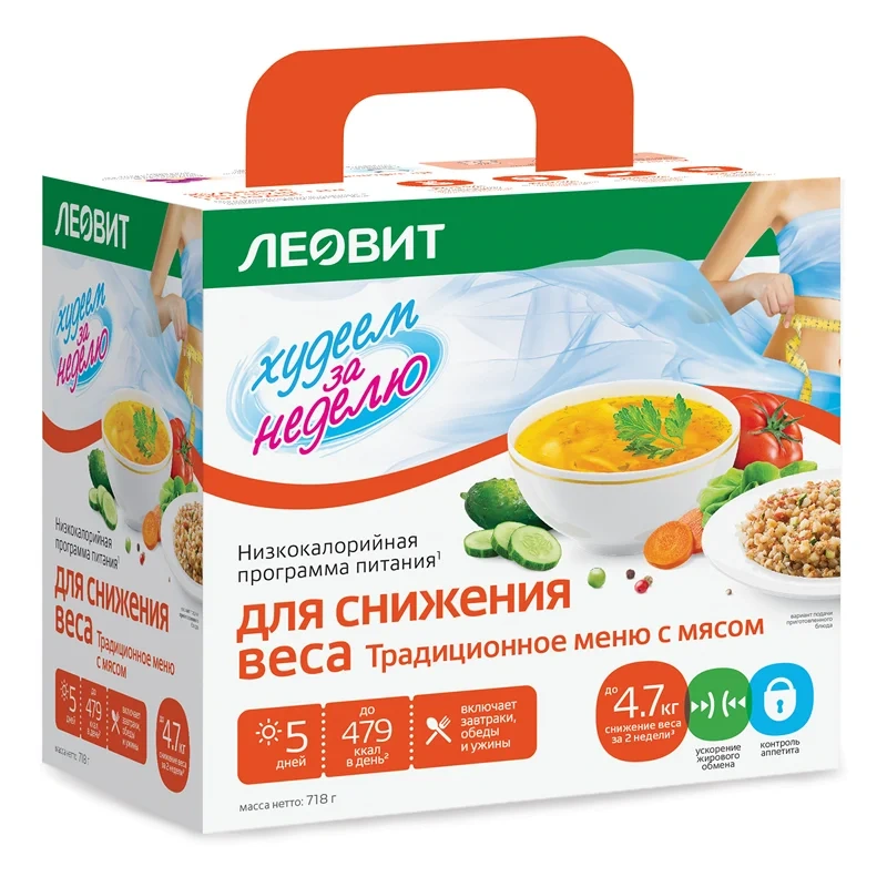 Кейсы Леовит Худеем за неделю Леовит Худеем За Неделю 'Традиционное меню с мясом', на 5 дней, 718г