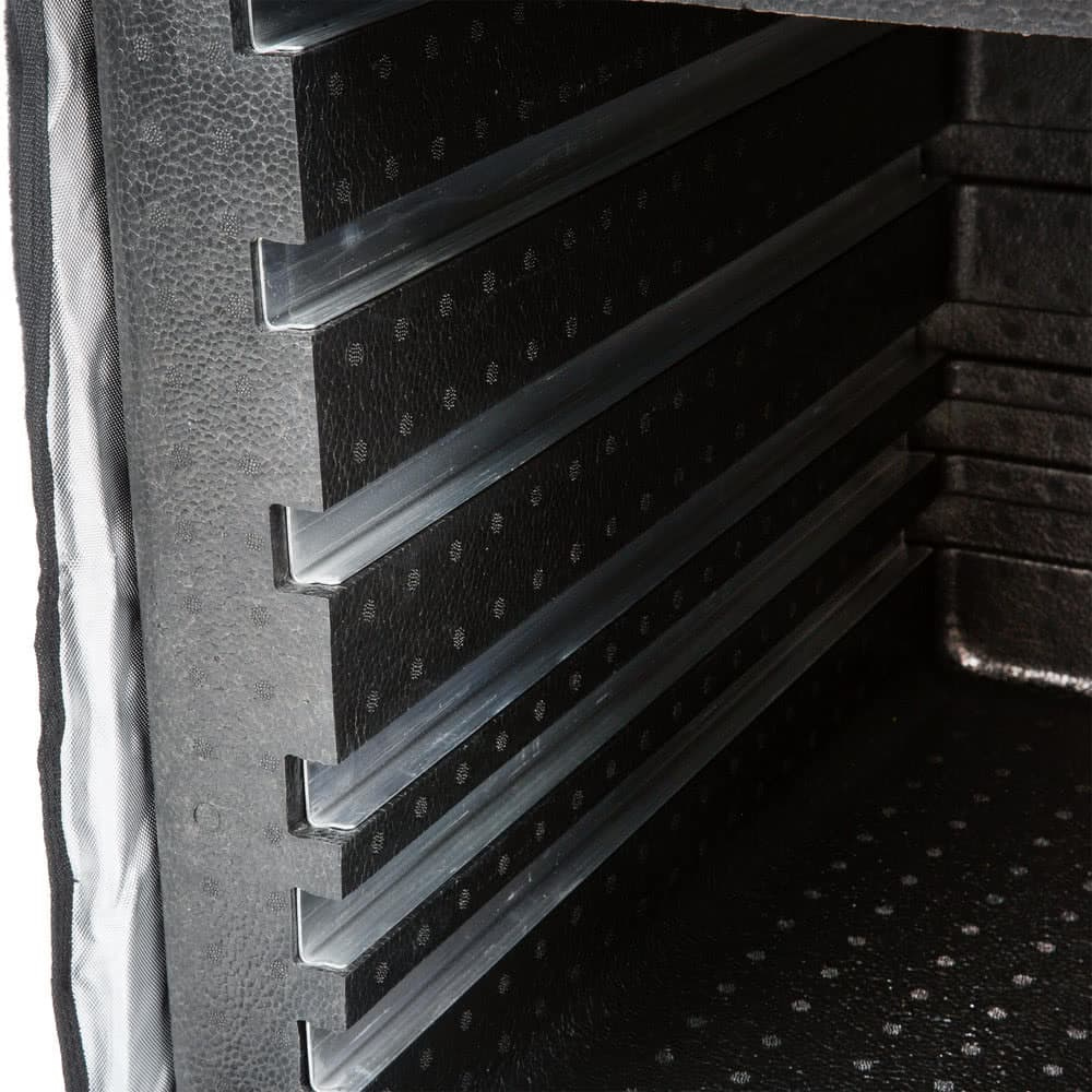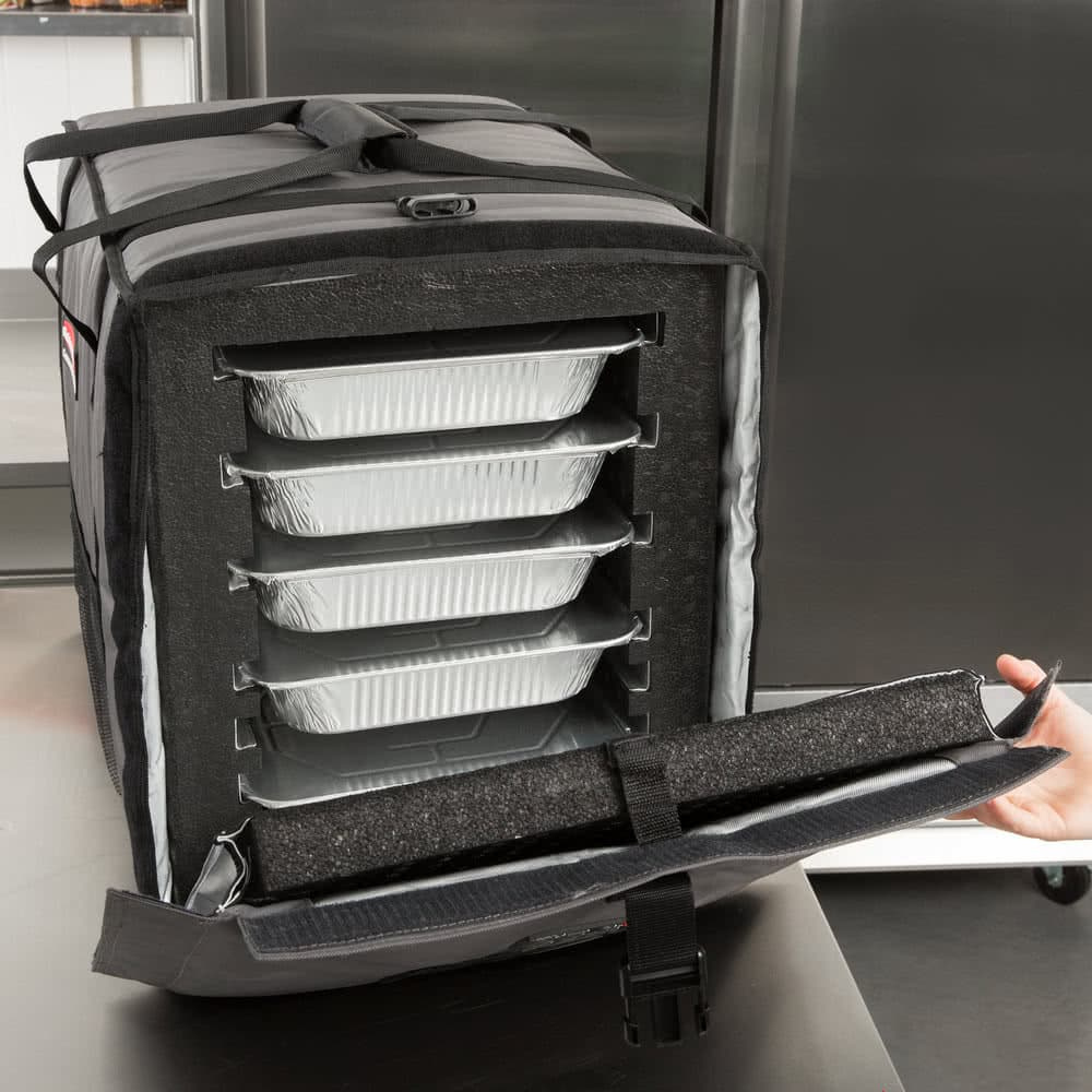 Легкие кейтеринговые контейнеры PROSERVE®. Термоконтейнер для гастроемкостей, вмещает пять гастроемкостей GN1/1 65 мм или три GN1/1 100 мм.Четыре слоя термоизоляции имеют малый вес и обеспечивают безопасную транспортировку пищи и напитков.