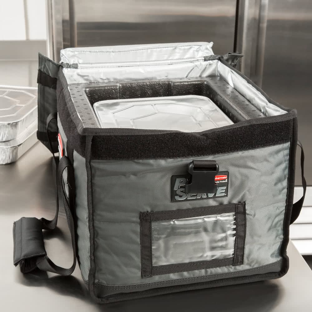 Легкие кейтеринговые контейнеры PROSERVE®. Термоконтейнер для гастроемкостей, вмещает три гастроемкостей GN1/2 65 мм или две GN1/2 100 мм.Четыре слоя термоизоляции имеют малый вес и обеспечивают безопасную транспортировку пищи и напитков.