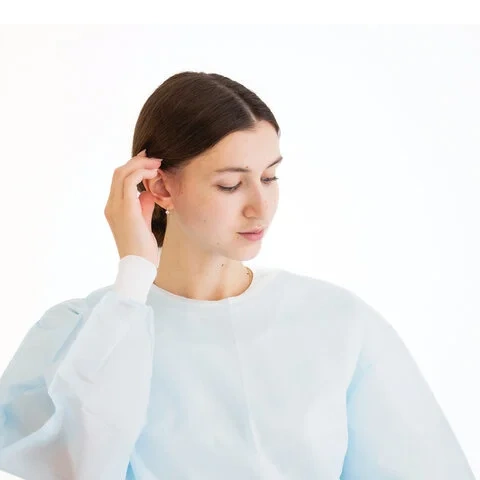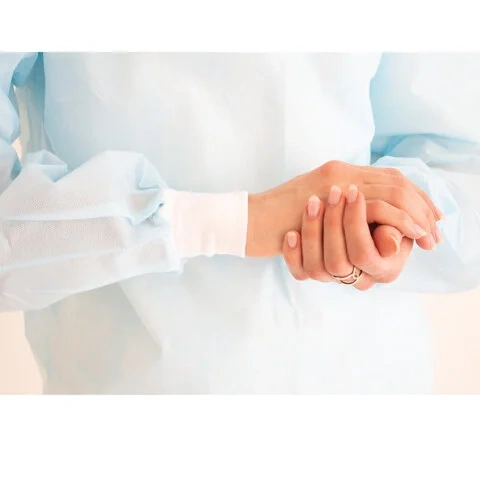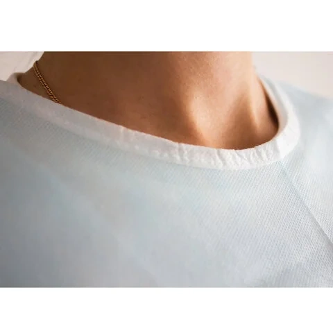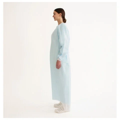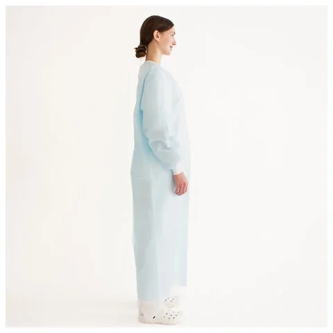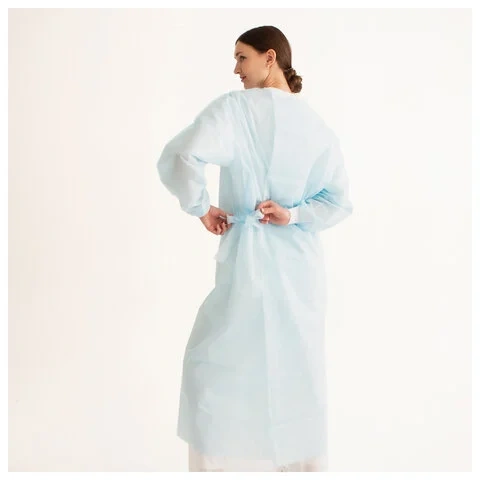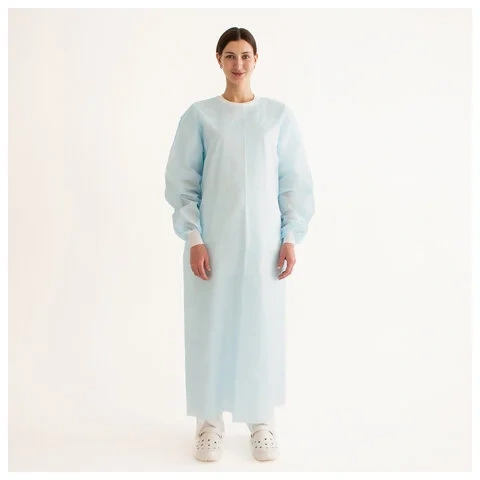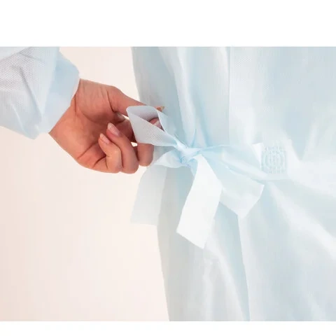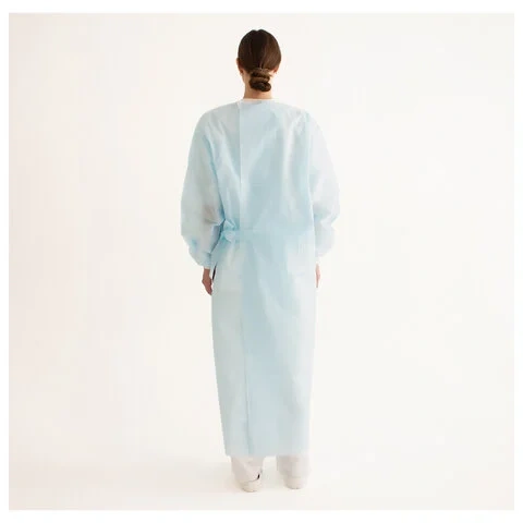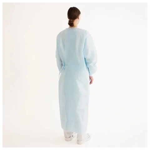 Технология производства халата — сварной шов без проколов ткани. Благодаря изготовлению из спанбонда обладает хорошей воздухопроницаемостью. Фиксатор завязок на стерильном халате позволяет надеть его так, чтобы спина оставалась стерильной.
