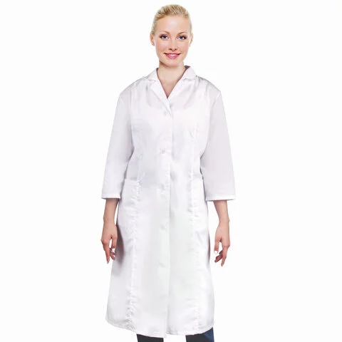 Предназначен для работников лабораторий, медицинских учреждений, пищевой и фармацевтической промышленности. Халат из легкой прочной ткани. Легко стирается.