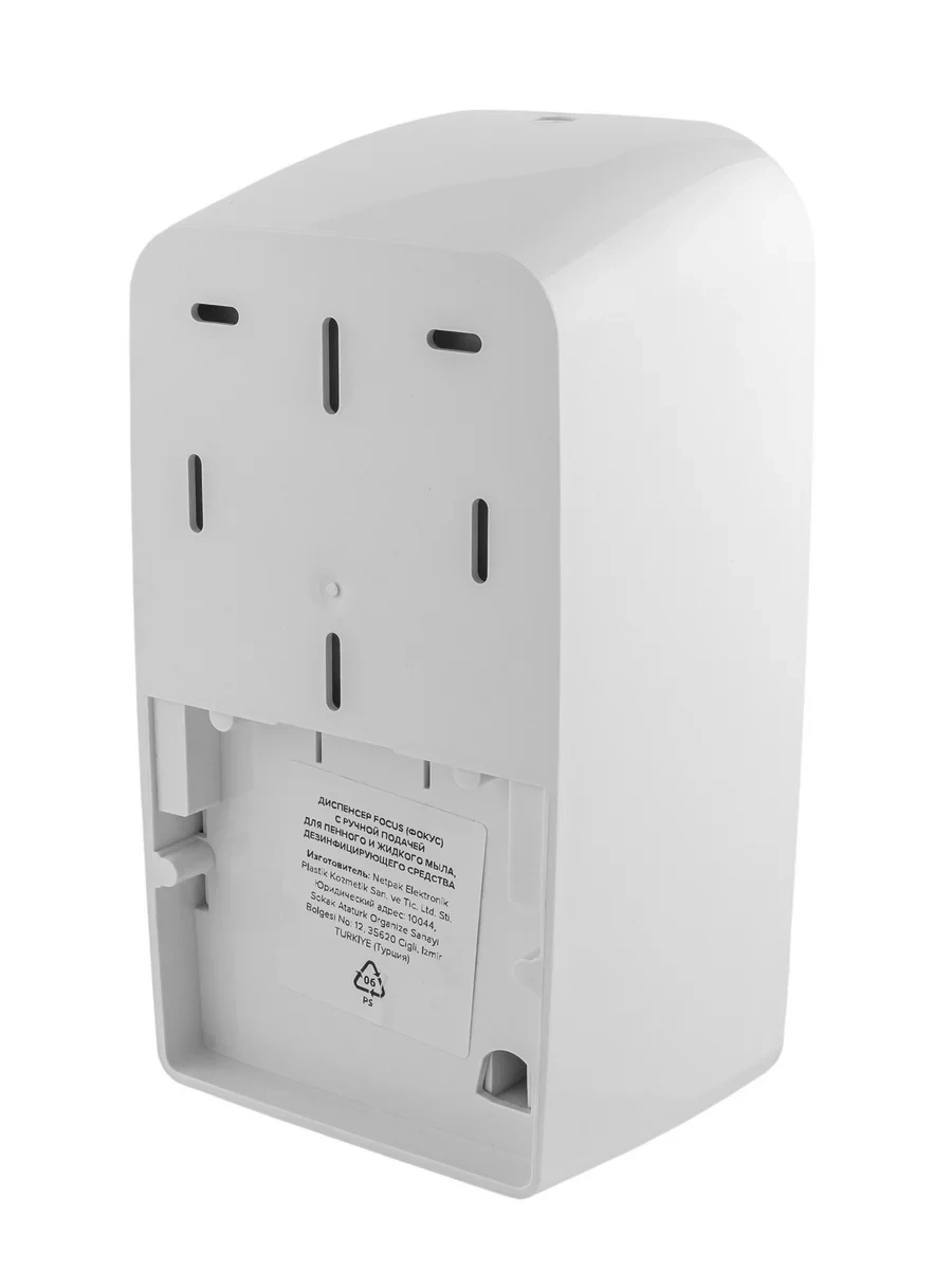 Наливной диспенсер для пенного мыла практичен и функционален в использовании. Изготовлен из белого пластика. Диспенсер подходит для использования в туалетных комнатах всех размеров и уровня проходимости. Уникальное сочетание стильного дизайна и функциональности.
