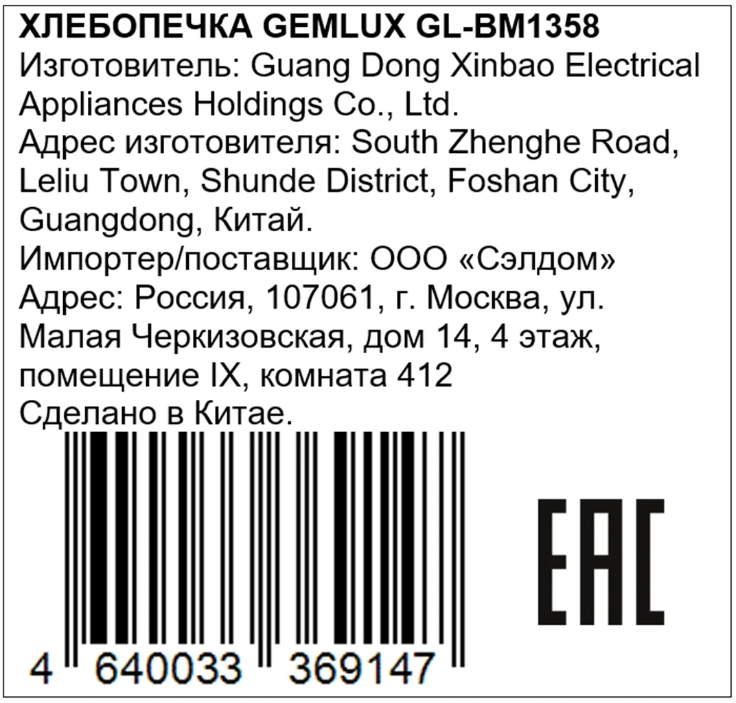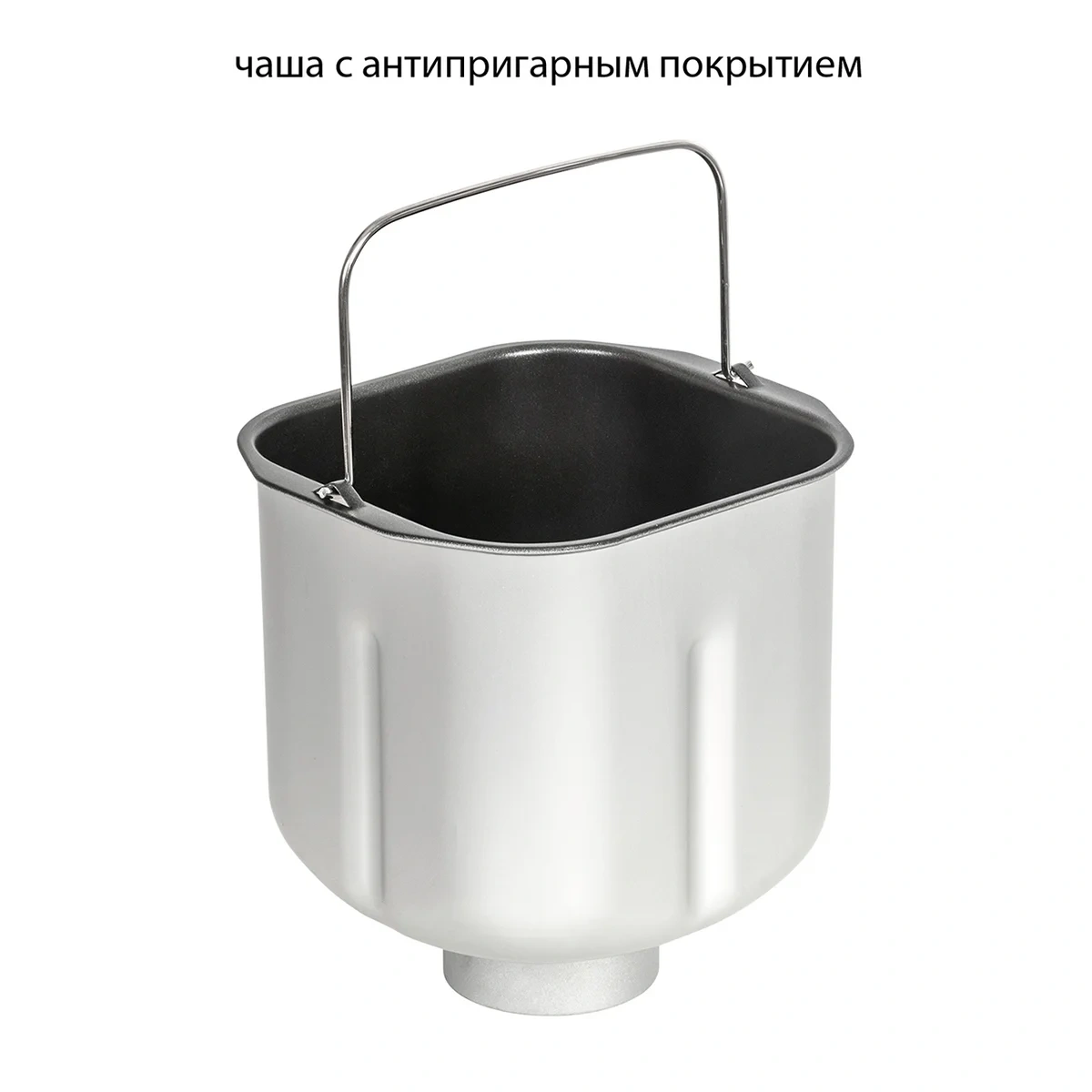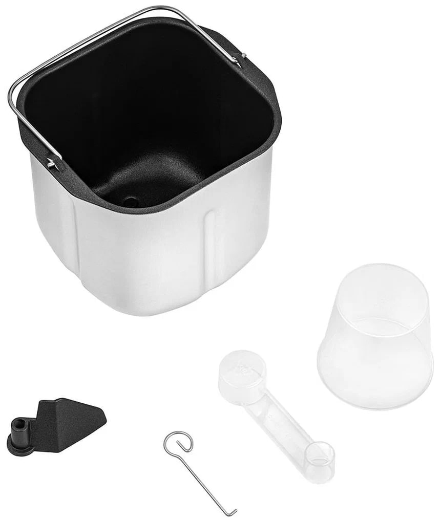 | Комплектация | хлебопечка - 1 шт.; мерный стакан - 1 шт.; мерная ложка - 1 шт.; лопасть для замеса теста - 1 шт. |