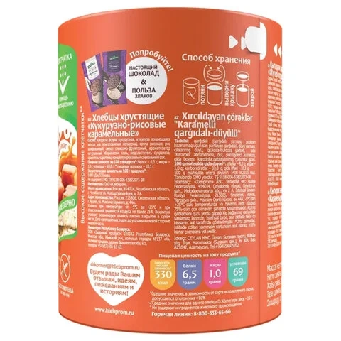 Состав: кукуруза лопающаяся желтая для приготовления попкорна, крупа кукурузная, крупа рисовая: рис шлифованный, фруктоза, ароматизатор натуральный Карамель, соль йодированная, подсластитель сукралоза, краситель: аннато.