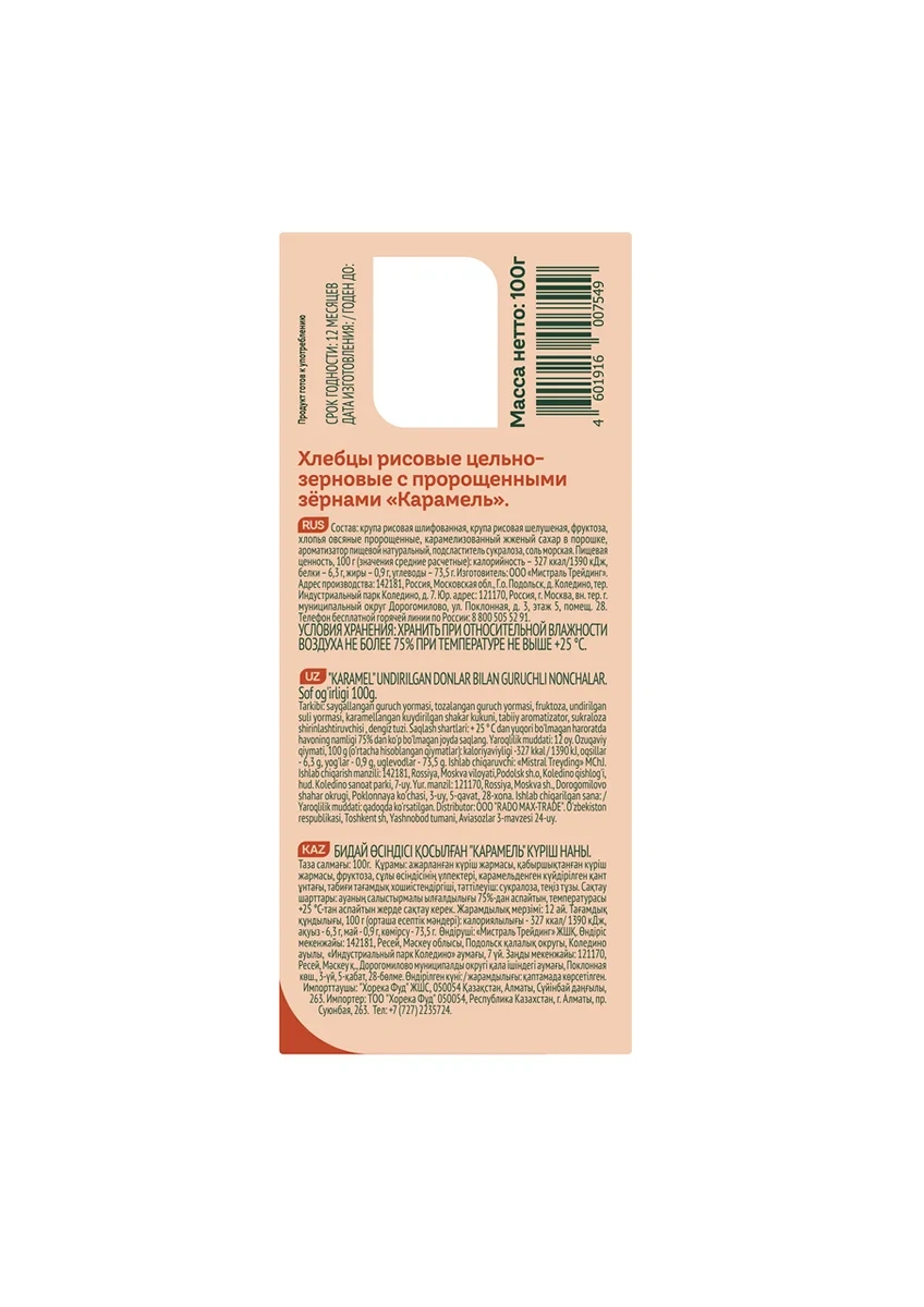 Хлебцы Fitstart Карамель рисовые, 100г