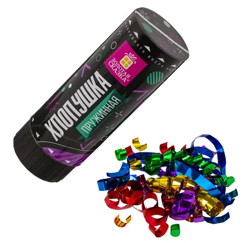 Хлопушка пневматическая Золотая Сказка 11см, серпантин-конфетти