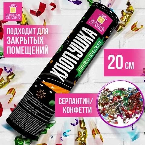 Создайте фейерверк из серпантина и конфетти с помощью хлопушки ЗОЛОТАЯ СКАЗКА! Подарите яркое настроение всем гостям!