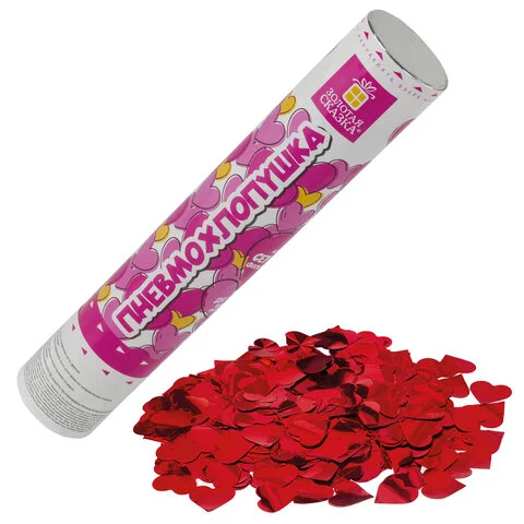 Хлопушка пневматическая ЗОЛОТАЯ СКАЗКА 'СЕРДЕЧКИ' 30 см, фольга, сердечки, красный, 591475