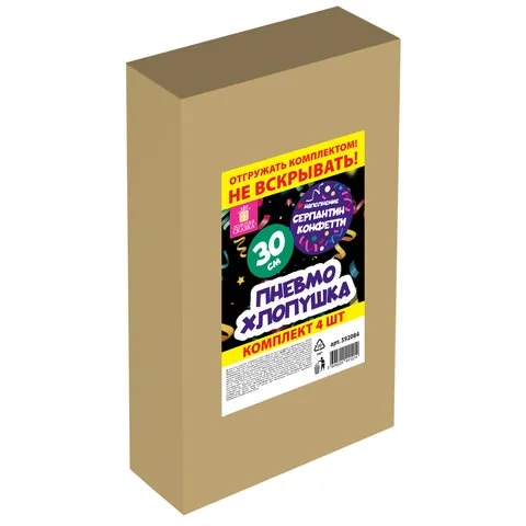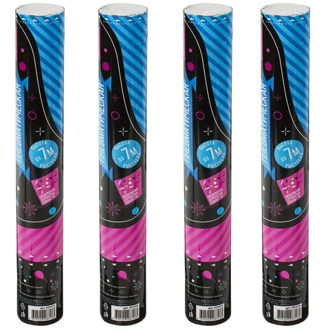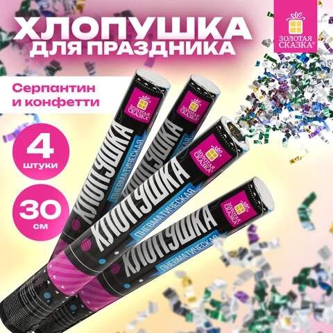 Комплект хлопушек, высотой 30 см с фольгированным наполнителем в виде серпантина и конфетти цвета ассорти, является абсолютно безопасным.