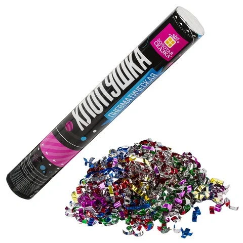 Пневматическая хлопушка не является пиротехникой и работает на основе энергии сжатого воздуха. Конфетти и серпантин ярких цветов можно использовать в помещении или на улице. Хлопушка подойдет для праздников, концертов, реквизита для фотосессии.