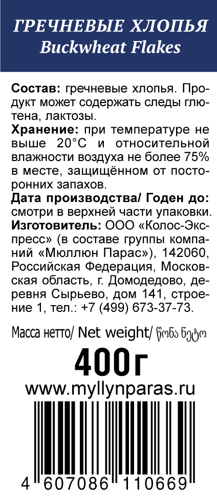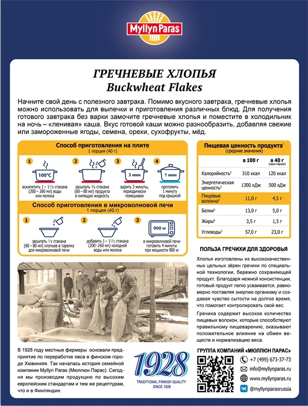 Хлопья изготовлены из высококачественных цельных зерен гречихи по специальной технологии, бережно сохраняющей продукт. Благодаря нежной консистенции, готовый продукт легко усваивается, равномерно поставляя энергию организму и создавая чувство сытости на долгое время. Гречиха содержит высокое количество пищевых волокон, которые способствуют правильному пищеварению, оказывают положительное влияние на обмен веществ.