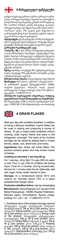 Хлопья изготовлены из высококачественных цельных зерен овса по специальной технологии, которая сохраняет крупную структуру продукта.