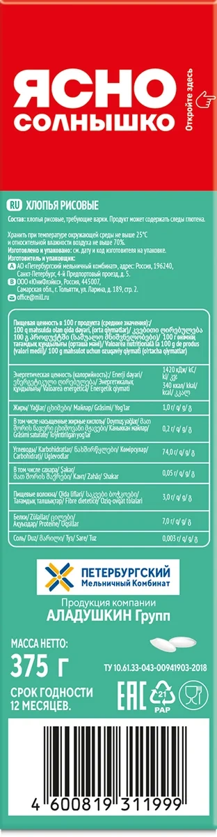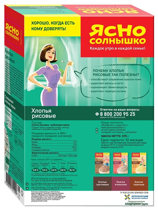 Овсяные хлопья из цельного зерна специально разработаны для питания детей с 12 месяцев. Произведены из калиброванной финской овсянки, которая проходит бережную обработку: очищается от шелухи, пропаривается под давлением, режется и плющится до толщины 0,35 мм. Благодаря такой технологии обработки хлопья сохраняют все полезные свойства зерна, а каша из них обладает нежной консистенцией и сливочным вкусом, который нравится детям и ценят их мамы.