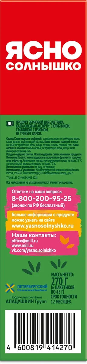 Отзывы о «Хлопья овсяные Ясно солнышко экстра №1, 500г»