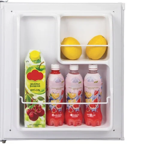 Полезный объем холодильника составляет 43 л. Данная модель включает в себя 2 полки в основное камере, небольшую морозильную камеру и 2 компактные полки в дверце холодильника. В основной камере расположена полочка для хранения продуктов, выполненная из нержавеющей стали. Объем морозильной камеры составляет 4 л, что идеально подходит для нескольких порций мороженого или 2 бутылок воды. Дополнительно в данной модели есть возможность перевешивания двери, инструкция описана в руководстве пользователя.