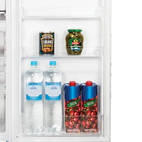 Полезный объем холодильника составляет 125 л. Данная модель включает в себя 2 полки в основной камере, небольшую морозильную камеру и 3 компактные полки в дверце холодильника. В основной камере расположена полочка для хранения продуктов, выполненная из закаленного стекла. Объем морозильной камеры составляет 15 л, что идеально подходит для нескольких порций мороженого или 4 бутылок воды. Дополнительно в данной модели есть возможность перевешивания двери, инструкция описана в руководстве пользователя.