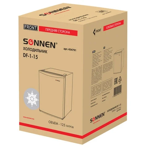 Компактный и стильный холодильник SONNEN DF-1-15 потребляет незначительное количество энергии 0,4 кВ/сут и подходит под класс энергоэффективности 'А'.