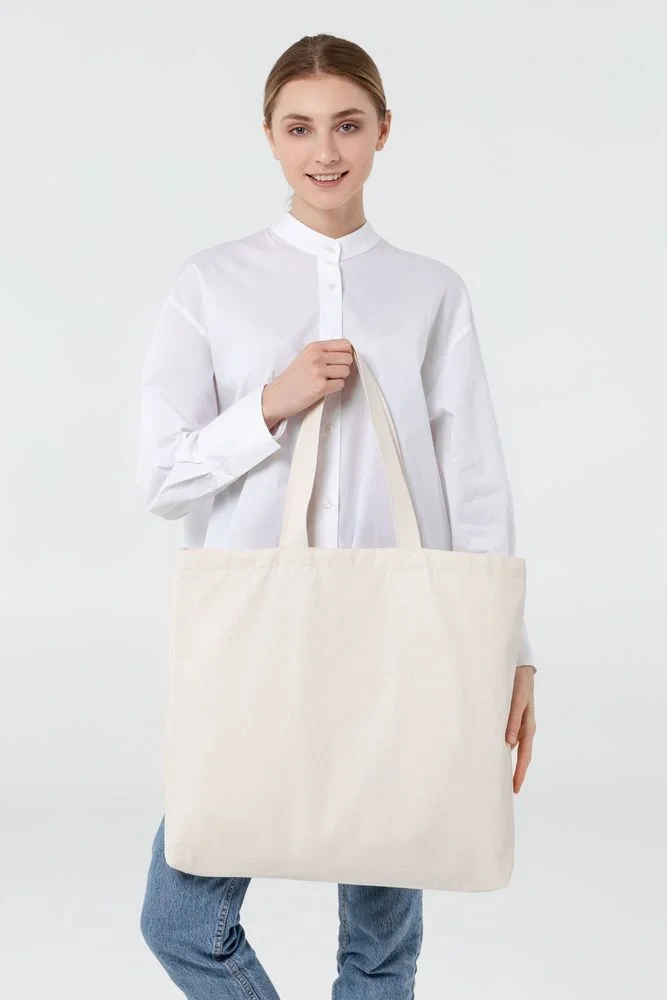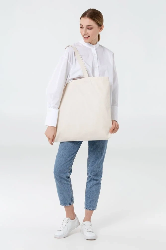 Выдерживает нагрузку до 15 кг.Сумка имеет внутренний карман для мелочей.Способ обработки внутреннего шва: оверлок. Цвет: неокрашенный. Размер изделия: 49х45х4 см; ручки 3,2х60 см. Материал: хлопок, плотность 260 г/м. Возможные виды нанесения: Флекс; Полноцвет водными чернилами; Шелкография на текстиль;