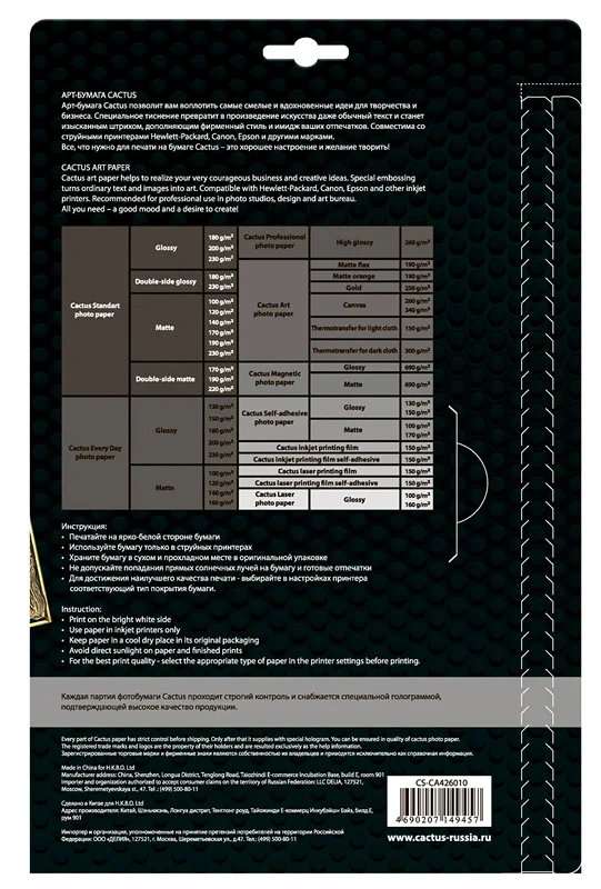 Холст Cactus CS-CA426010 A4/260г/м2/10л. для струйной печати