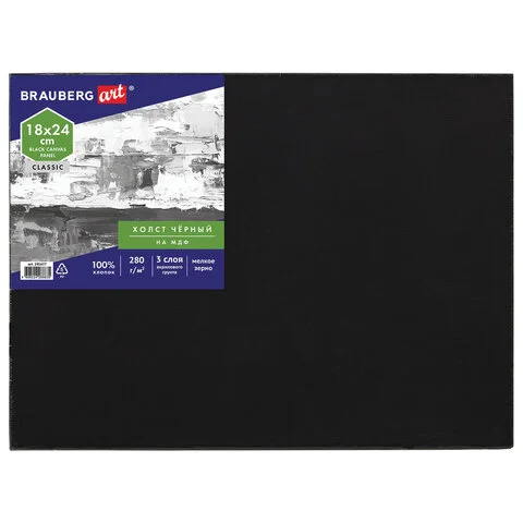 Холст черный на МДФ, BRAUBERG ART CLASSIC, 18*24см, грунтованный, 100% хлопок, мелкое зерно, 191677