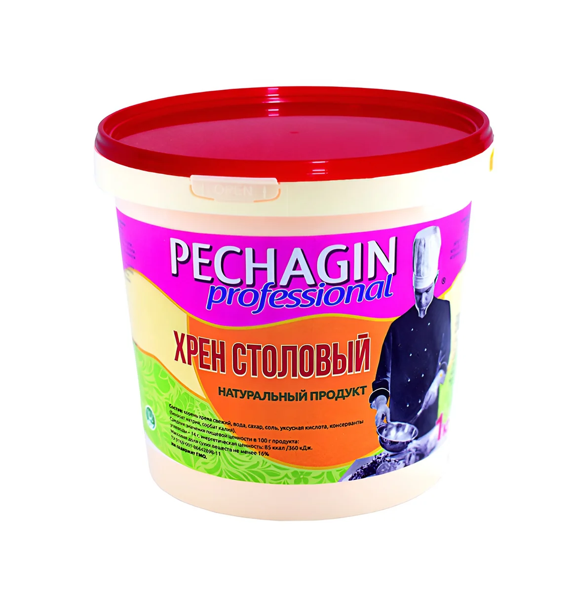Хрен Pechagin Professional столовый, 1кг отличается насыщенным пикантным вкусом и станет удачным дополнением к самым разным блюдам. Его можно подавать к отварному, запеченному и жареному мясу, заливному, курице, салу и шашлыку, использовать для приготовления хот-догов и сэндвичей. Хрен обладает традиционным светло-бежевым цветом и однородной густой консистенцией, которая хорошо распределяется и удерживается на поверхности продуктов. Он помещен в экологичную упаковку, которой хватит на множество порций. Она обеспечивает герметичность и предотвращает контакт содержимого с воздухом, продлевая срок хранения и сохраняя свежесть продукта.