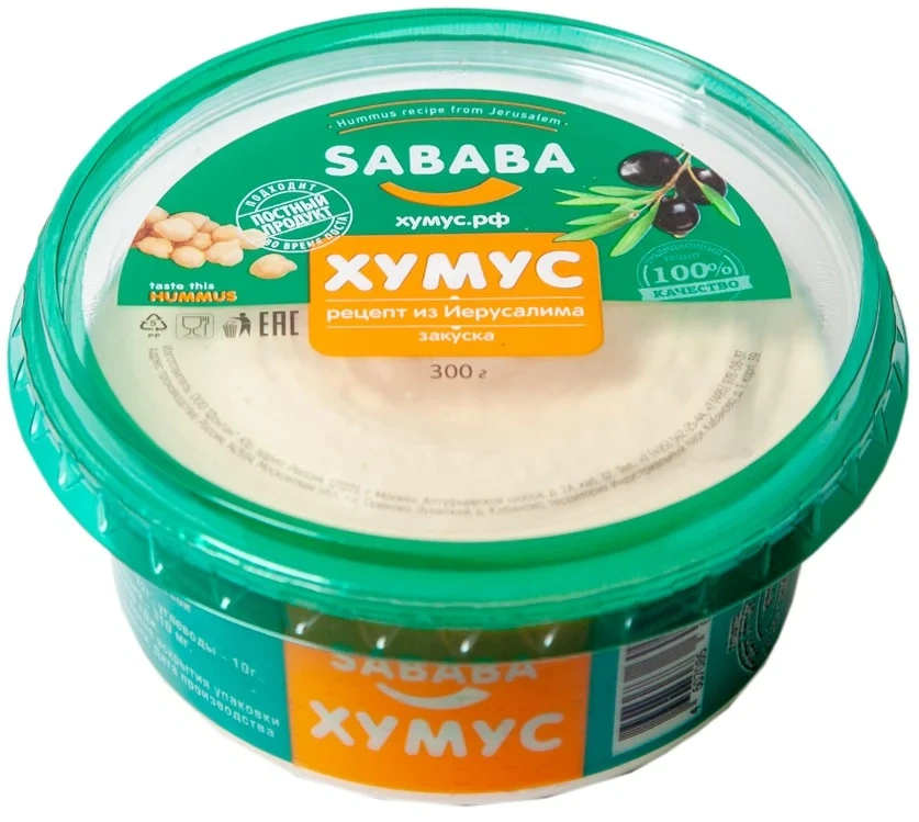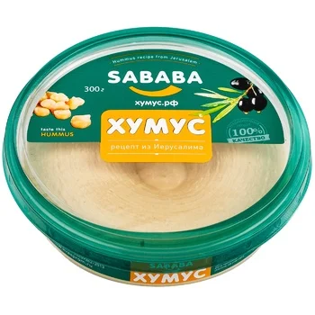 Хумус Sababa рецепт из Иерусалима, 300г – это закуска, созданная на основе нута с пастой из кунжутных семечек, оливковым и растительным маслом, солью. Она имеет нежную кремовую текстуру. Для ее приготовления используется традиционный рецепт. Продукт служит источником растительной клетчатки, ненасыщенных жиров и белка. Это блюдо относится к постному столу и подходит для утреннего или вечернего перекуса. Представленный продукт достаточно сытный и быстро утоляет голод. В ежедневном меню его можно использовать на бутерброды, в комплексе с лавашом, питой, кукурузными чипсами и комбинировать с другими продуктами. Он будет уместен к блюдам, приготовленным на гриле, овощам и соленьям.
