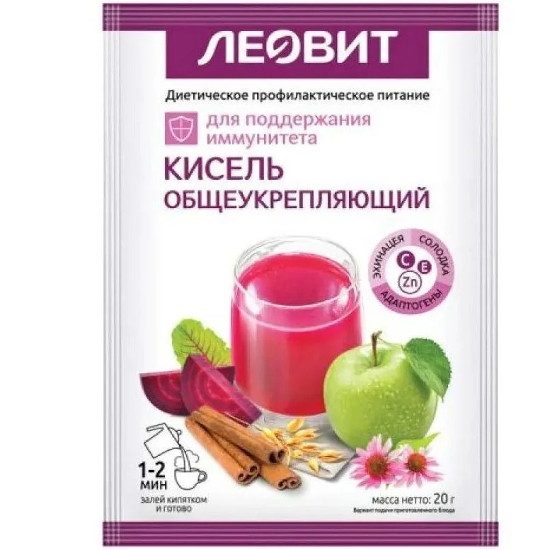 Кисель 'Общеукрепляющий' - это специализированный напиток, обогащенный витаминами и микроэлементами и предназначенный для поддержания функции иммунной системы. Содержит: специально подобранные лекарственные растения, целебную цветочную пыльцу и традиционный овес. Не содержит искусственных красителей и консервантов. Самым лучшим и безопасным для профилактики и лечения являются натуральные природные компоненты - сила природного комплекса для укрепления иммунитета, улучшения общего самочувствия и скорейшего выздоровления! Кисель в пакетиках по 20 г удобно использовать дома, взять с собой в дорогу или на работу. В любой ситуации вы приготовите его всего за 1-2 минуты! Просто залейте кипятком – и готово.