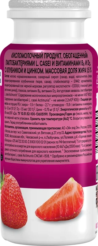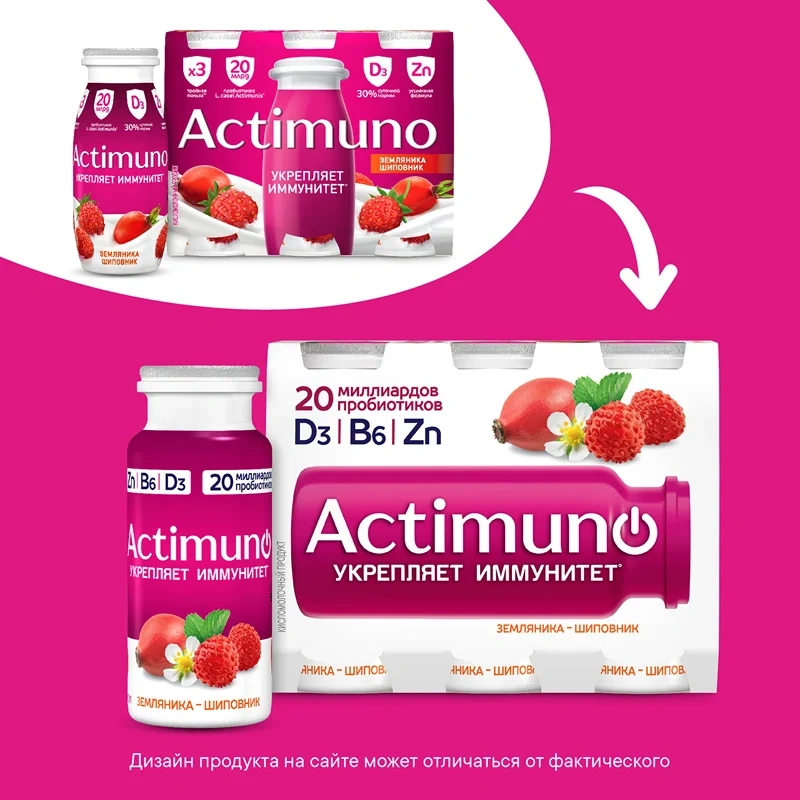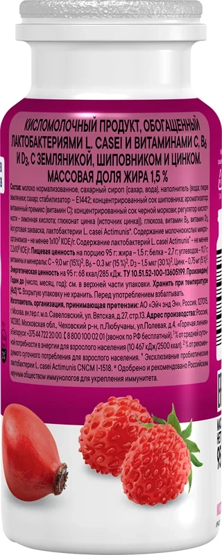 Напиток кисломолочный Actimuno земляника-шиповник 1.5%, 95г